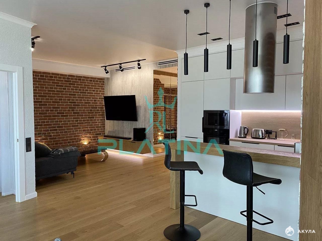 Просторная евродвухкомнатная квартира, удобная планировка — светлая кухня‑гостиная и отдельная спальня.