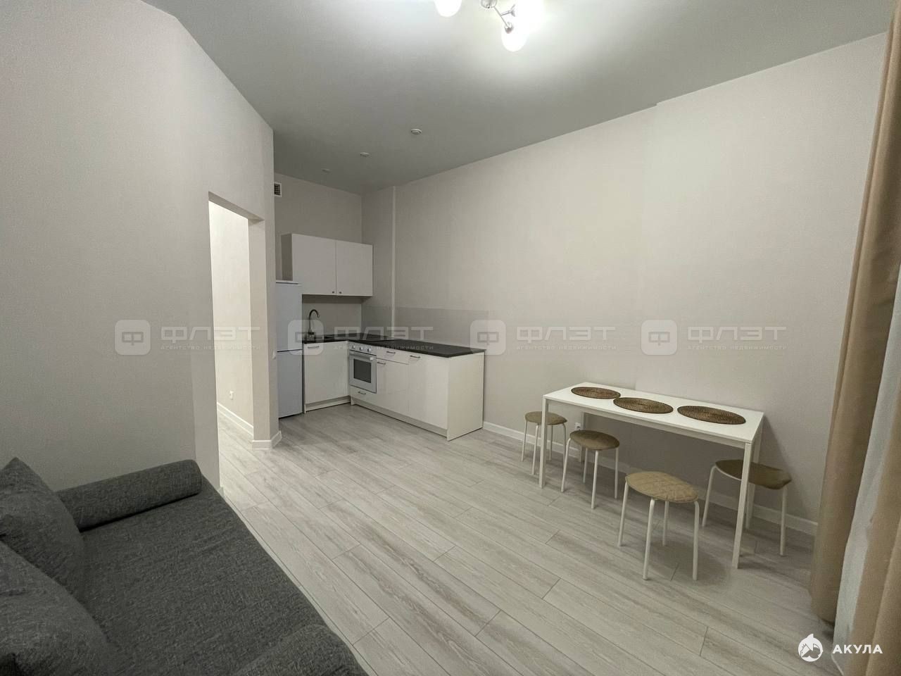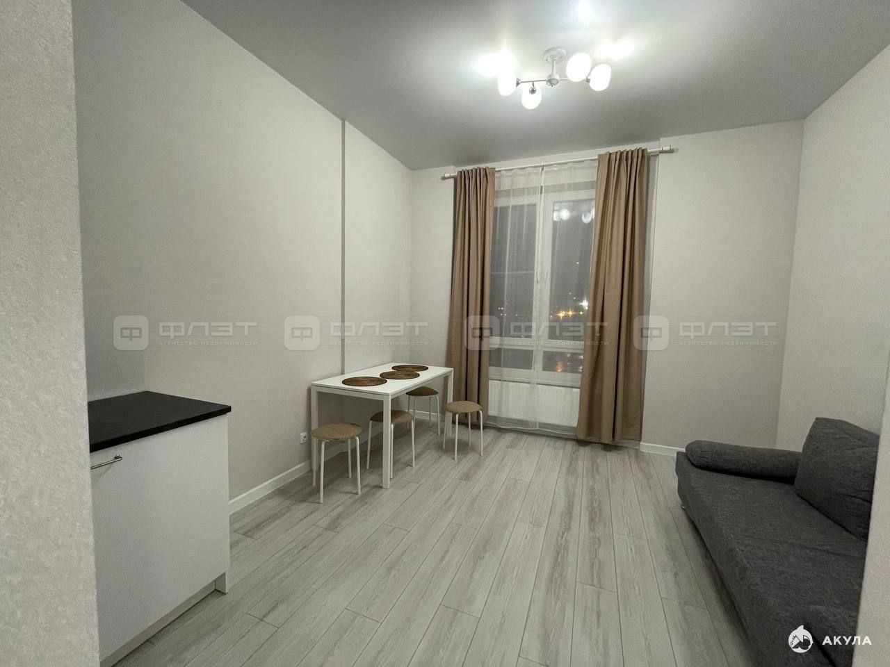 В квартире сделан современный ремонт. Полы: ламинат. Окна: пластиковые. Потолки: натяжные. Сан. узел в кафеле. Есть балкон.
