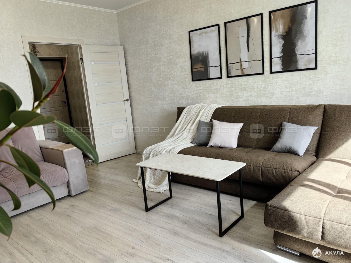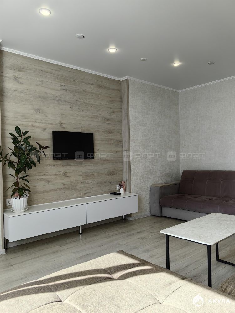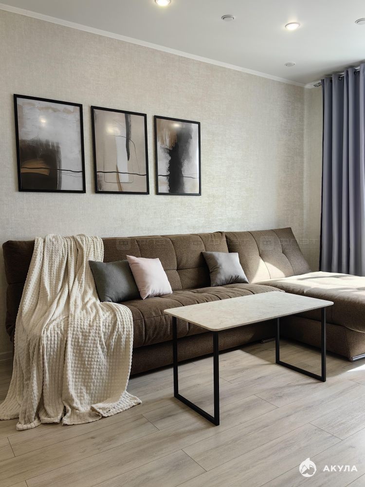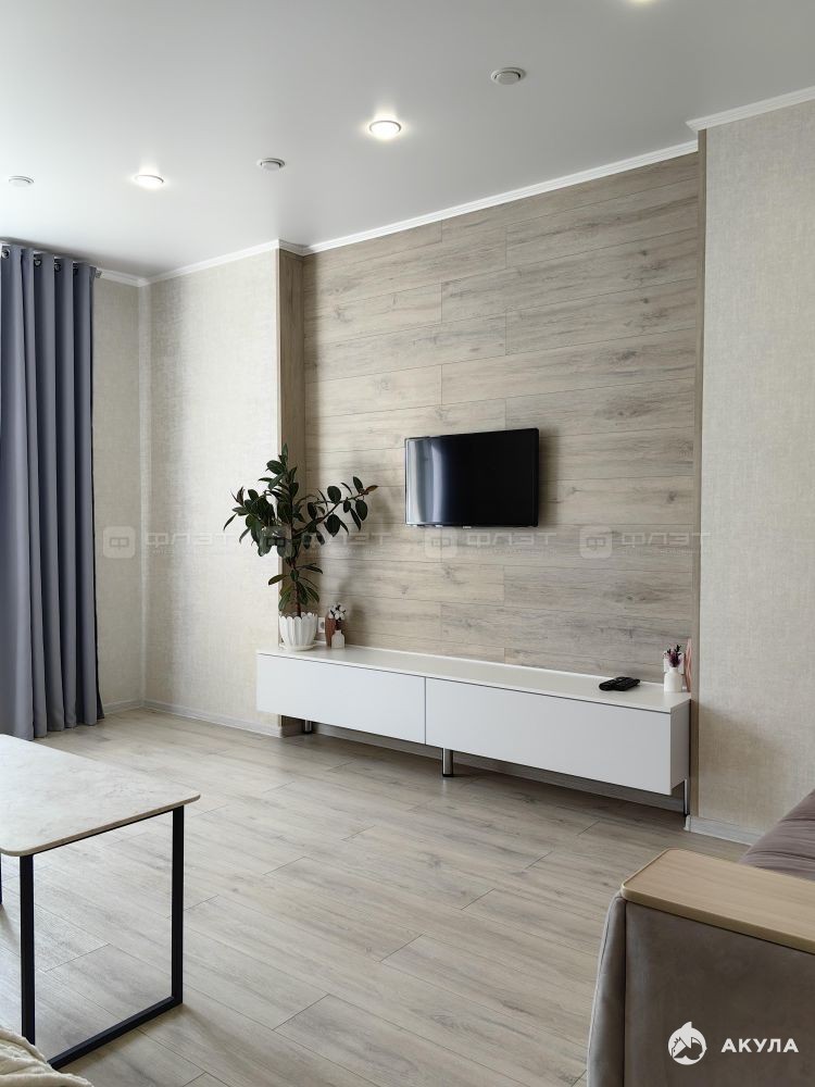 В квартире сделан современный ремонт. Полы: ламинат, плитка. Окна: пластиковые. Потолки: натяжные. Сан. узел в кафеле. Есть балкон.
