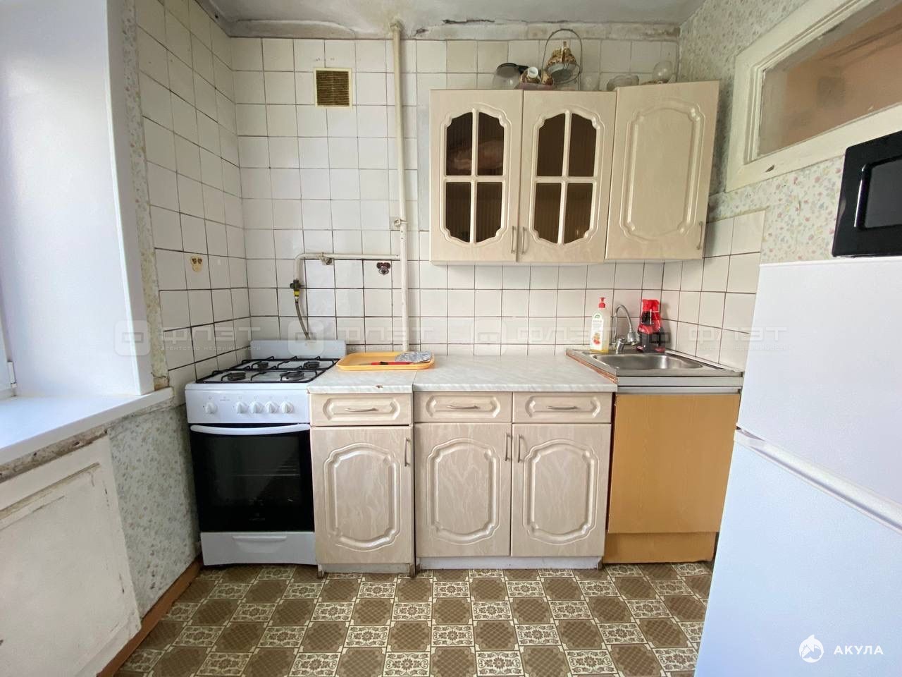 Жильцам предоставляется из мебели: кухонный гарнитур, диван раскладной, кровать, шкаф, cтол, стулья. Из техники: холодильник, плита, микроволновая печь, духовка, стиральная машина, телевизор.