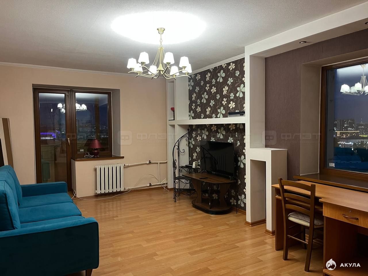 В квартире сделан качественный ремонт. Полы: ламинат. Окна: пластиковые. Потолки: натяжные. Сан. узел в кафеле. Есть лоджия.