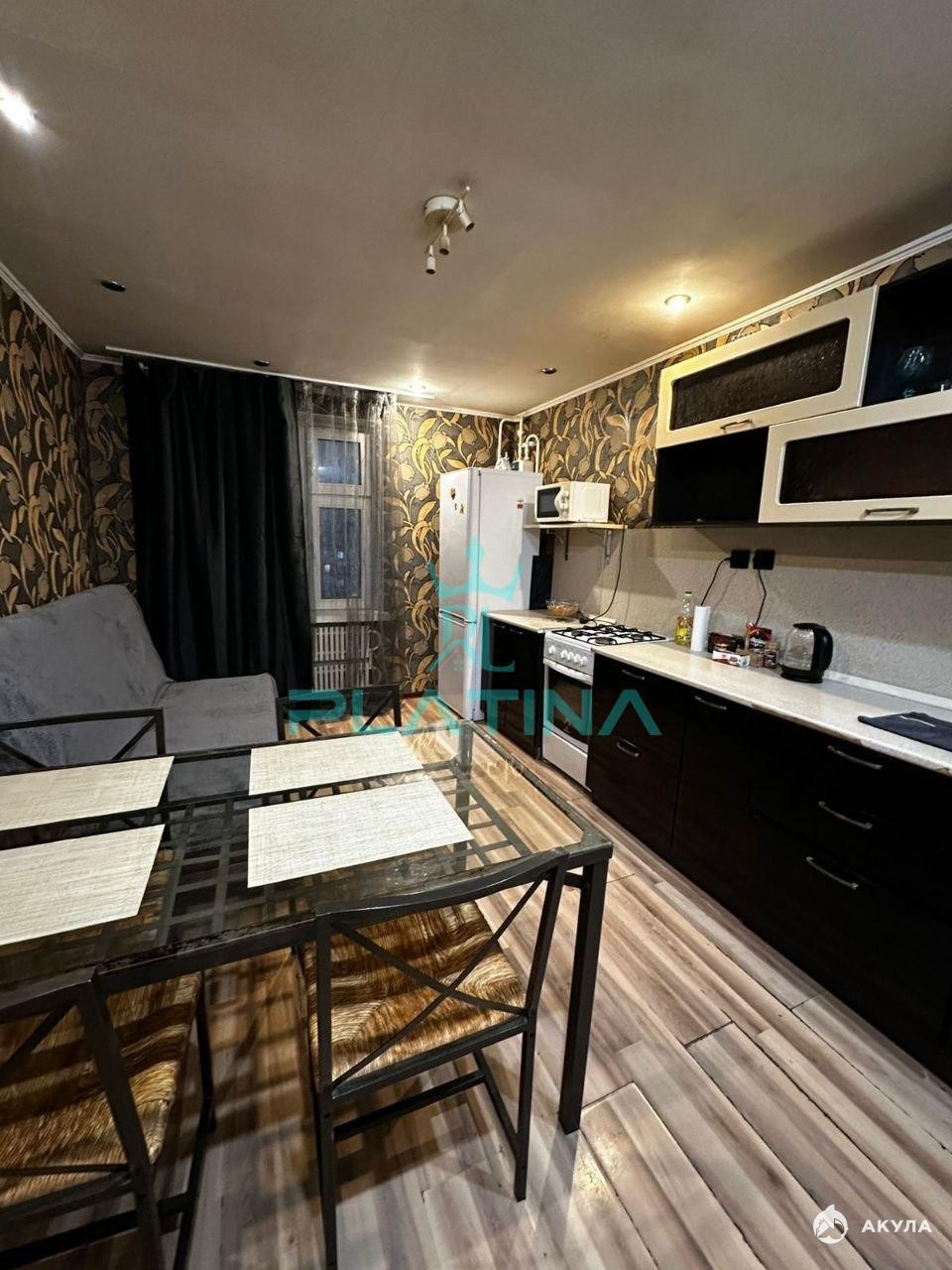 На просторной кухне, где царит атмосфера домашнего уюта, вас ждет удобный диван для отдыха и приятных вечеров.