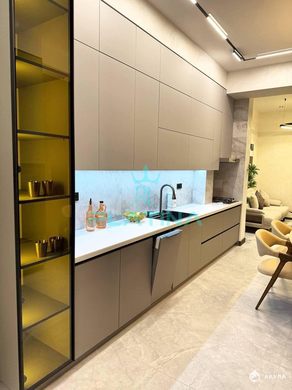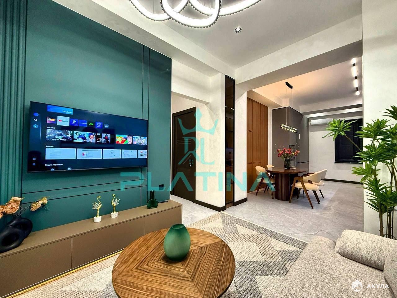 ✅ Кухня-гостиная: Идеальное пространство для семейных ужинов и приема гостей с функциональной ТВ-зоной и современным кухонным гарнитуром.