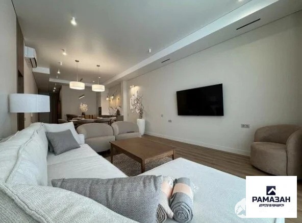 В квартире выполнен дизайнерский ремонт, что придаёт ей особый стиль и уют. В комнатах и на кухне есть вся необходимая мебель. Для комфортного проживания установлена современная техника: кондиционер, холодильник, телевизор, стиральная и посудомоечная машины. Просторная ванная комната оснащена и ванной, и душевой кабиной, а также имеется совмещенный и отдельный санузлы. На балконе и лоджии можно организовать зону отдыха или рабочее пространство.