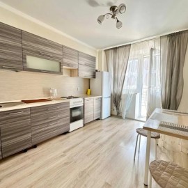 id:1210. Просторная и светлая квартира с современным ремонтом. Интерьер выполнен в спокойных пастельных тонах, создающих ощущение уюта и гармонии. Большие панорамные окна открывают вид на тихий зеленый двор и наполняют пространство естественным светом. В квартире...