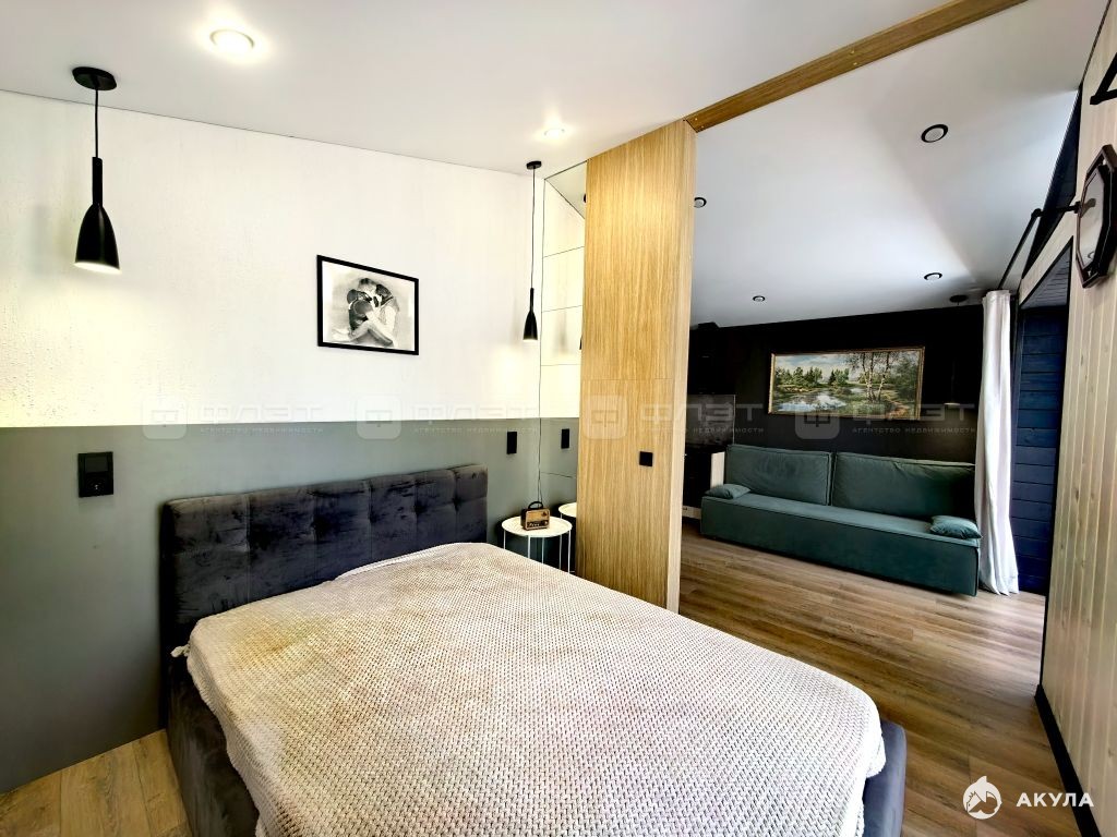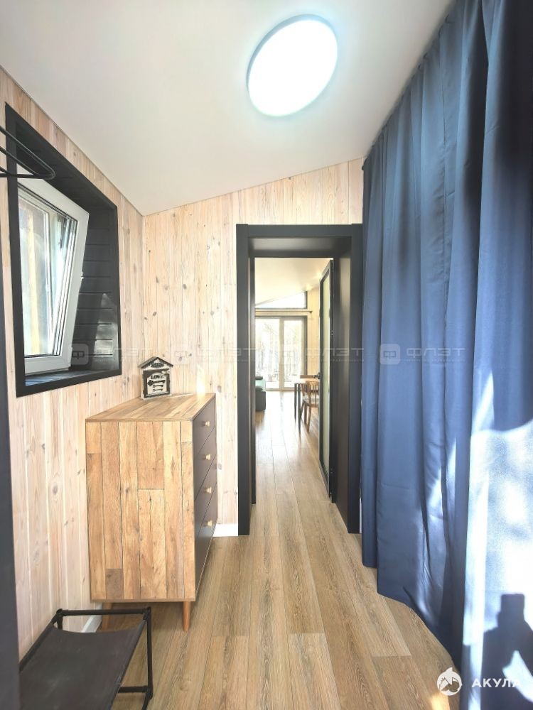 Объект №118207 Прекрасный вариантНовый дом в сосновом лесу расположен в 2 км от г.Иннополис, 30 мин от г.Казани, в Развитом СНТ Агат с широкими аллеями и асфальтированной дорогой.Дом 32 кв.м. на участке 6 соток построен в 2025 году , из газобетонных блоков с утеплителем, обшит металлосайдингом и деревом, огорожен забором, отапливается электрическим котлом, можно провести газ, по всему периметру теплые полы.