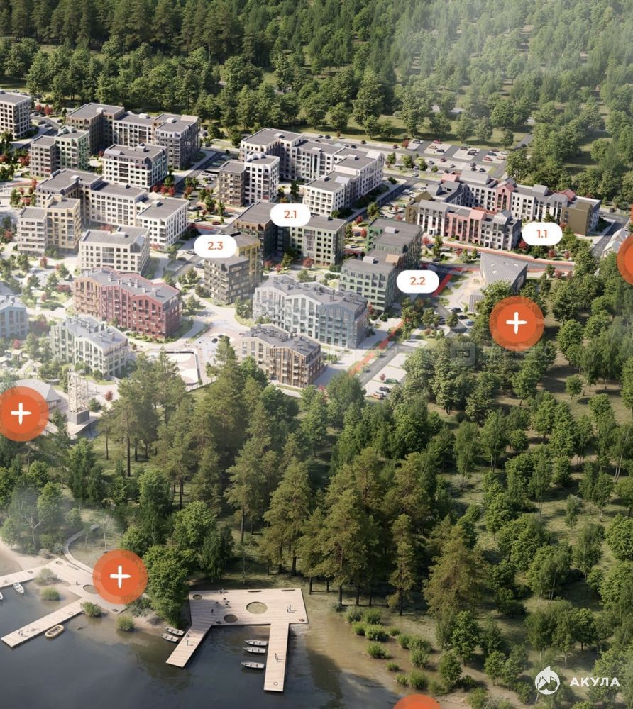 В окружении леса и реки. Здесь создаётся идеальная атмосфера для комфортной жизни на природе.На 1х этажах коммерция - магазины, кафе, уже строится детский сад, для школьников запланирован школьный автобус.